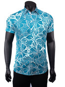 Cut and sewn for a classic fit, this breatheable cotton-blend fabric is a must-have for any well-curated closet. It features a blue floral print, button-down front, curved hem and short sleeves.
